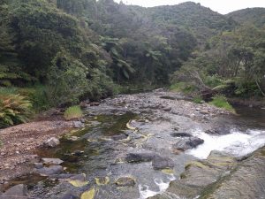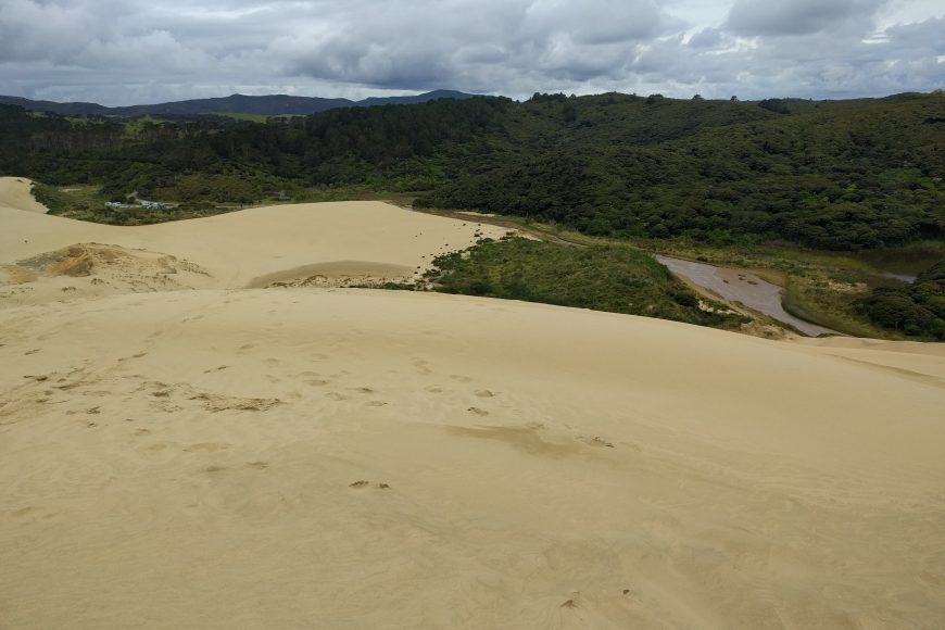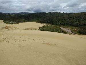 A few hours later we arrive at a buried Kauri forest, neither of us having any idea what that means, but it had a big sign so we decided to stop. Kauri trees are some of the largest trees on earth, though the forests have mostly been cleared. The buried forests refer to old forests which fell to a natural disaster and were dug up in the late 1800’s for the gum from the fallen trees. None of the behemoth trees still stand in the forest, but massive logs and stumps have been uncovered since. Not breathtaking scenery, but interesting history.