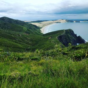 Elvis and I leisurely eat breakfast in the morning. Elvis opts for oats, I go for our common staple of a peanut butter based meal- a P.B. sandwich with dates and dried apricots. We take a short stroll around the lake, go for a swim, and pack up. Off to Cape Reinga today. A few locals stop by the lake with their dog and in chatting with them they inform us there is a coastal road. We decide to try it. We see the fuel station they mentioned and hang a right.