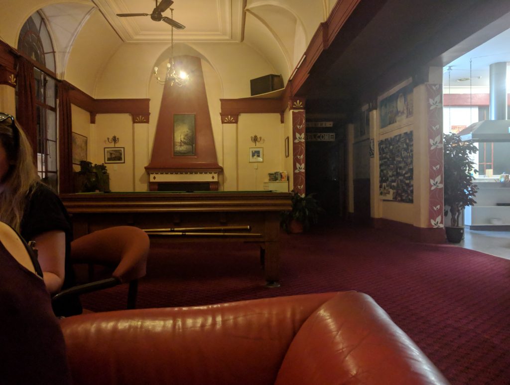 Criterion, the hostel I choose, embraces the art deco style on the inside too. Decorations resemble a speak-easy era party room. I love it here. I need a shower though. The last few campsites lacked rivers deep enough to swim in.