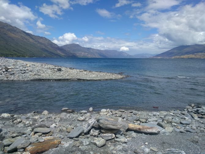 I stop at a few places on the way down to Wanaka. I have lunch on the shore of Lake Hawea at a campsite. Sitting on the grass above the rocky beach, I am hopeful Wanaka will be up to my expectations. It is supposed to be a small, quiet version of Queenstown. Plenty of hiking and right on the lake, with a bounty of restaurants and shops, young travelers working, ski fields a short distance away are all attractive features while lacking the too busy, transient crowd of Queenstown. Nobody stays in Queenstown, they all simply pass through. Or so I have heard. I finish my last few bites of my two peanut butter and jelly sandwiches gone but I linger by the water for a while. A Lake surrounded by mountains, it is hard to imagine a landscape I would prefer over this to see daily. People always ask if you would prefer a beach house or a lakeside cabin. The answer was always easy for me. I wonder if a beach will ever appeal to me over a cabin. But right now, it does not.